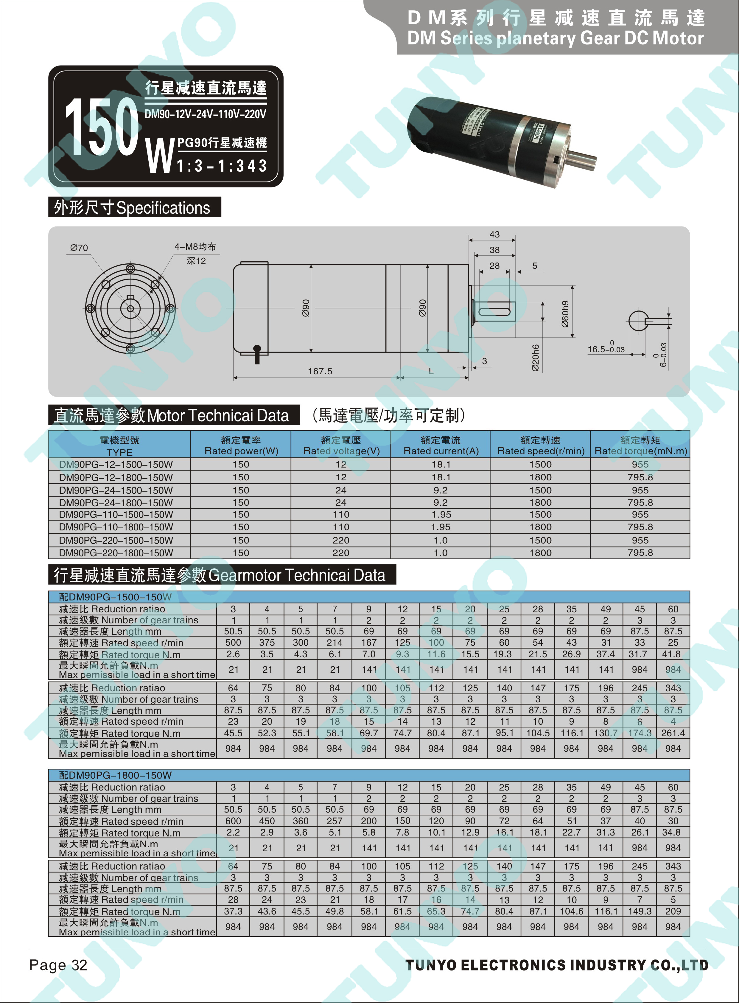 DM90-PG90-(150-200W)行星减速直流电机