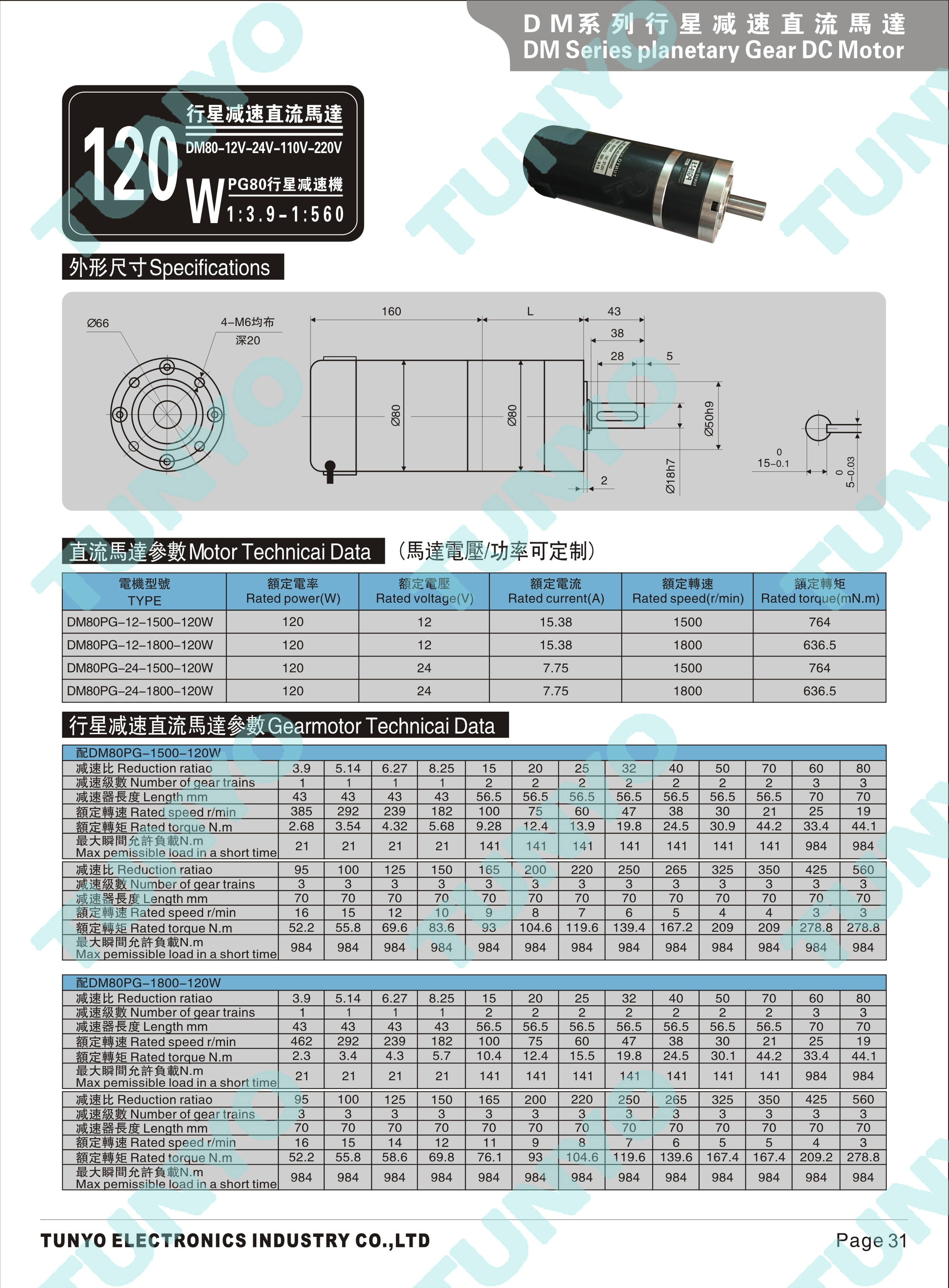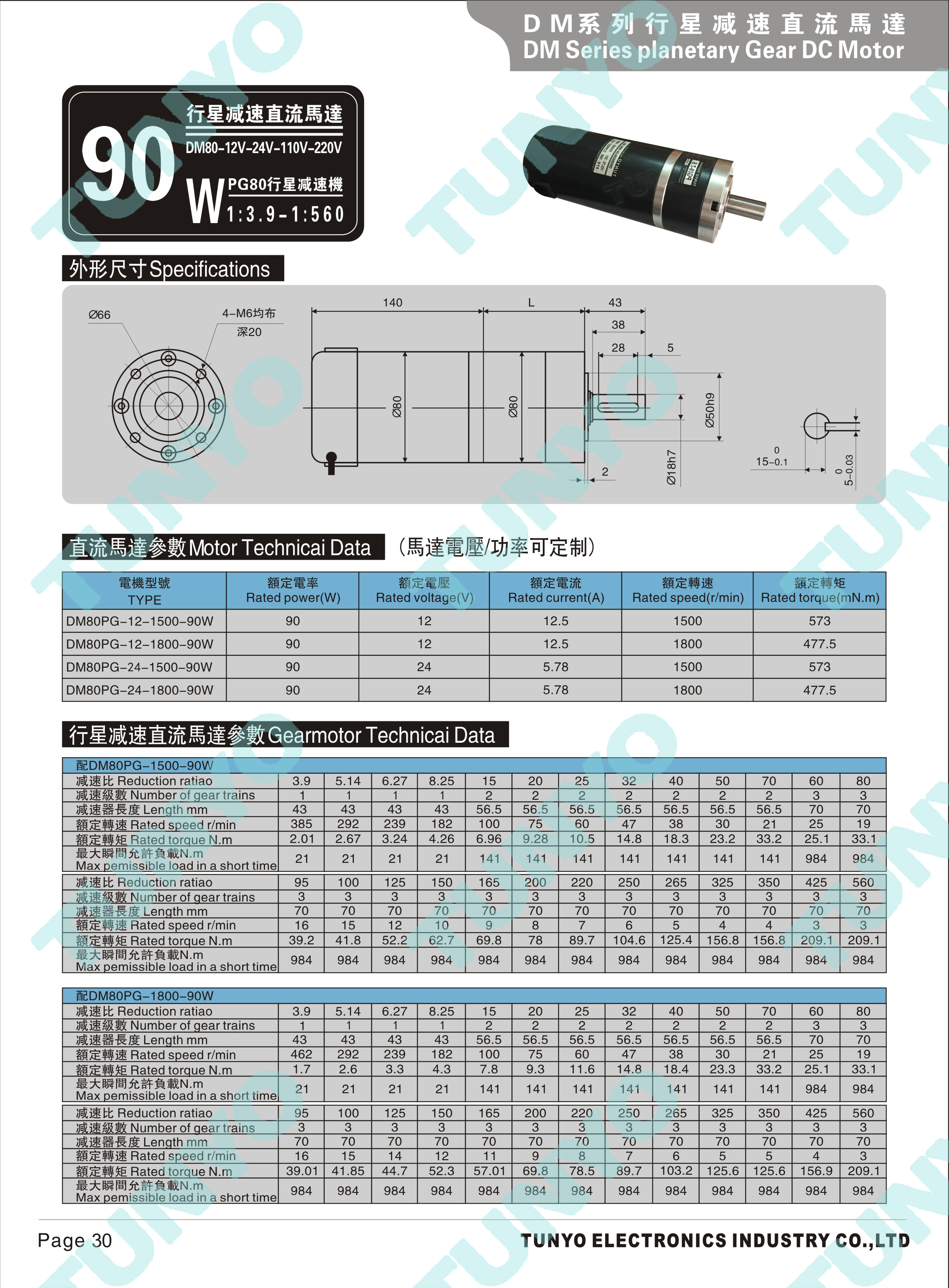 DM80-PG80-(40-60-90-120W)行星减速直流电机