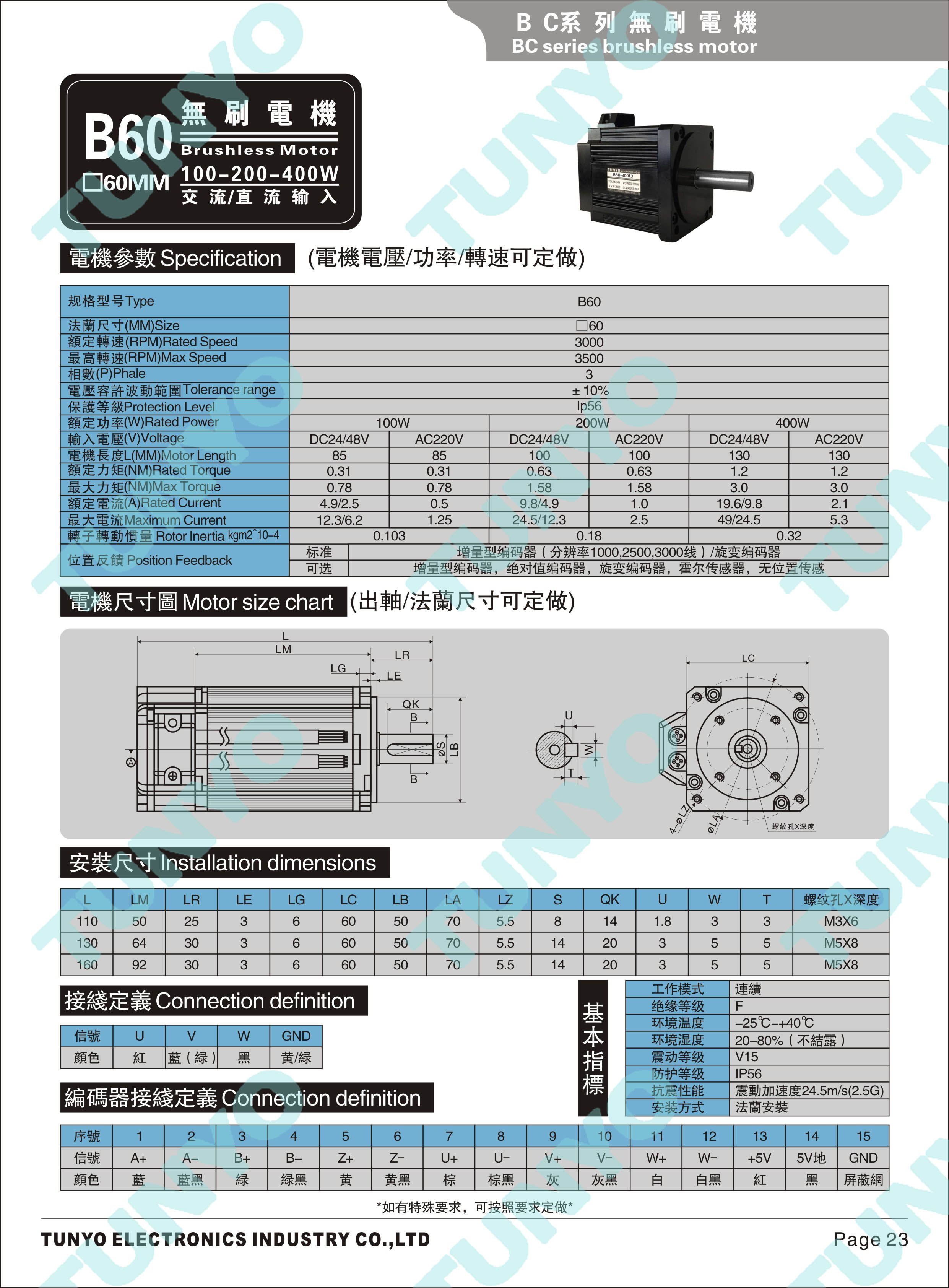 B60(0.1-0.4KW)无刷电机