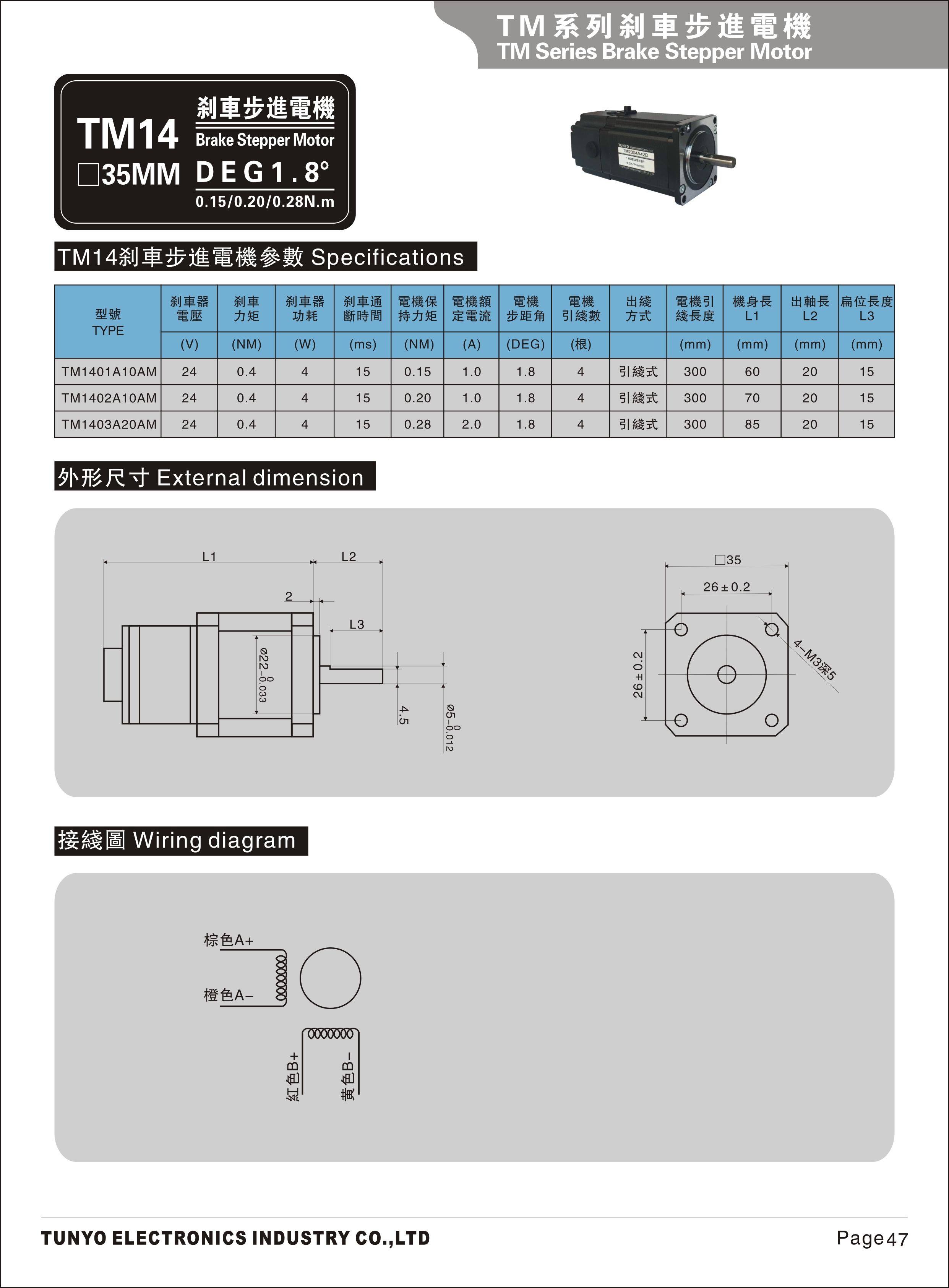TM14-35mm刹车步进电机