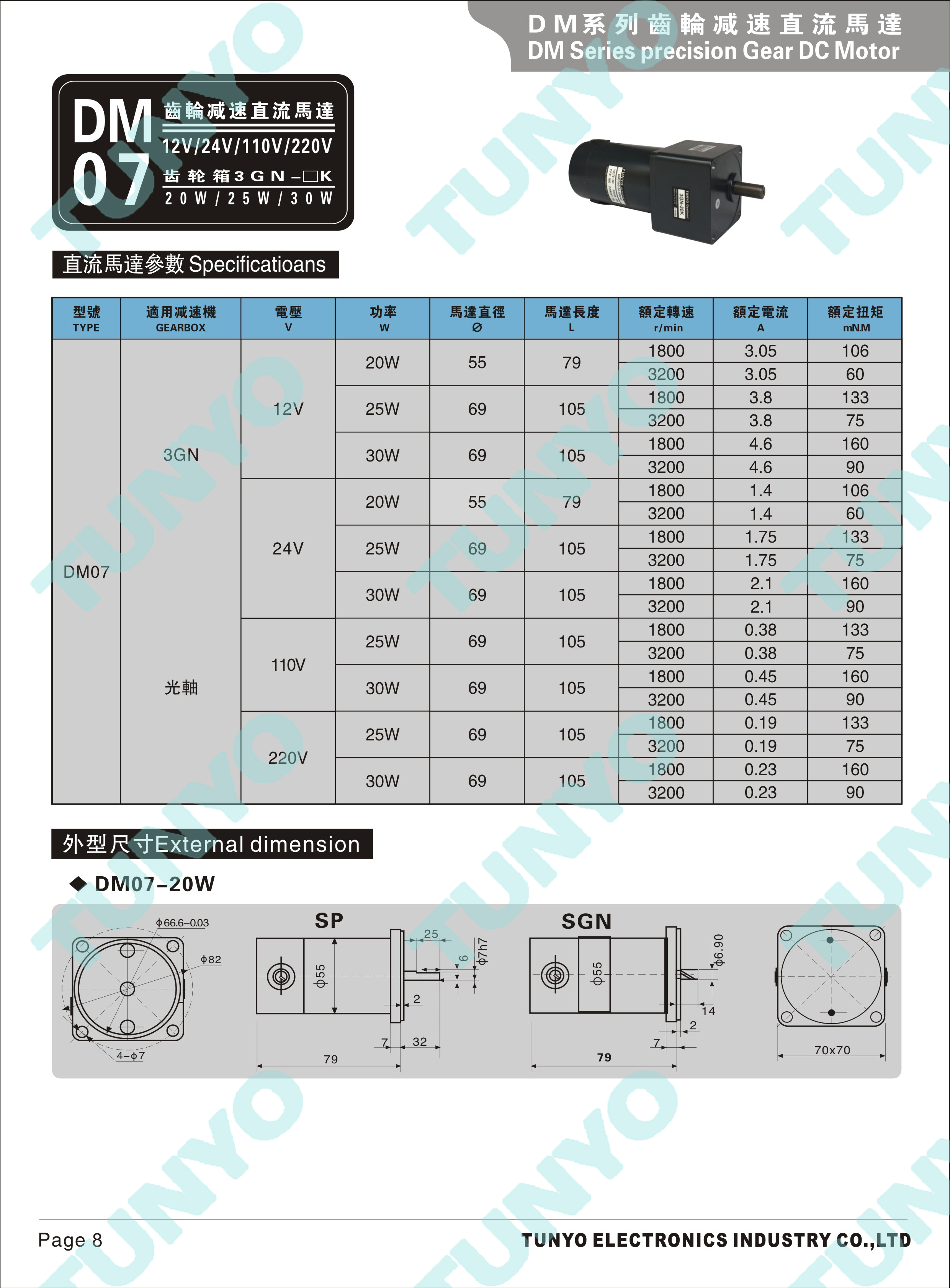 DM07(20-25-30W)齿轮减速直流电机